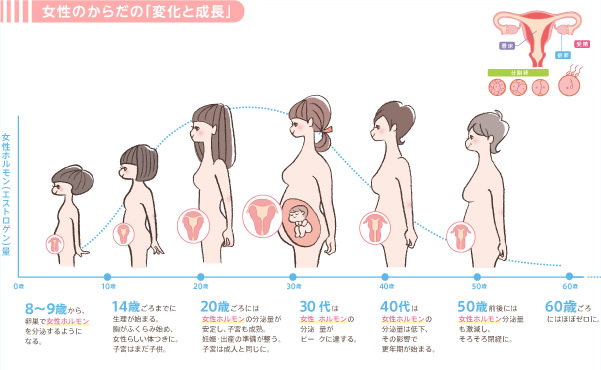 女性ホルモンのはたらき、からだにあたえる影響は年齢によって異なります。